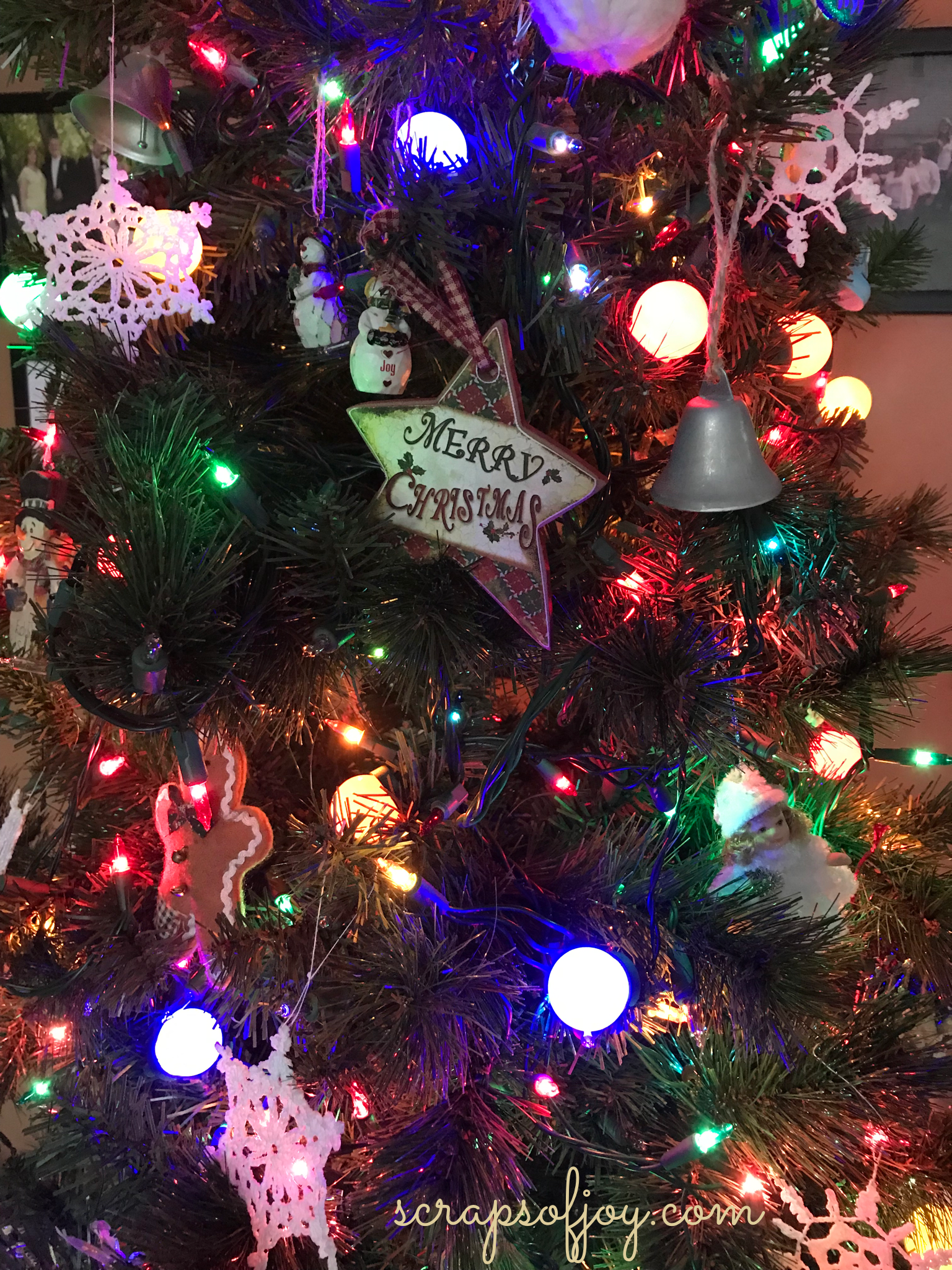 I made a couple of dozen crochet snowflakes for a friend many years ago. I always meant to crochet some for myself, but by the time I was done what I promised, I was done with doing more. They are so pretty on your tree that’s filled with so many memories of Christmases past.
